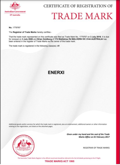 ENERXI is an amazing SPORTS brand as it brings ‘Energy’ with a touch of ‘XI’. To buy now contact: brian@trademark.ventures
