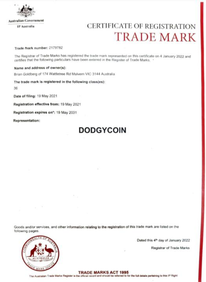 DODGYCOIN is a must have trademark for anyone with a sense of humour in the crypto and digital currency industry.